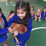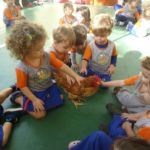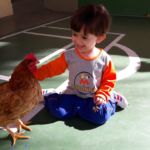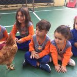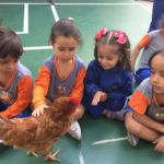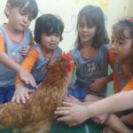 Em maio, uma galinha chegou à escola. Em breve, um galo virá fazer companhia a ela. Com o casal, as crianças terão a oportunidade de acompanhar o processo de reprodução das aves, comparando-o com o dos mamíferos, que puderam observar no ano passado, com o casal de coelhinhos que morou na escola.