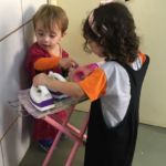 No entanto, na semana que antecedeu ao Dia das Mães, elas foram figuras centrais na escola. Cada criança trouxe de casa uma roupa e acessórios usados pela mamãe e brincou de imitá-la em situações vivenciadas no dia a dia familiar. Com muito carinho, cada aluno prep