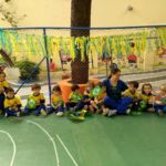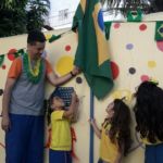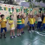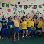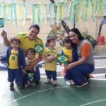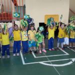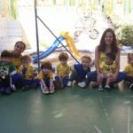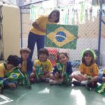 Para comemorar o início da Copa do Mundo, no dia 15 de junho, as crianças chegaram à escola com roupas e adereços nas cores brasileiras.