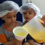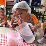 Ao preparar uma receita, as crianças exploram sabores, cores, odores e texturas variadas. Acompanham e se encantam com as transformações das misturas, que representam as primeiras aulas de Química.